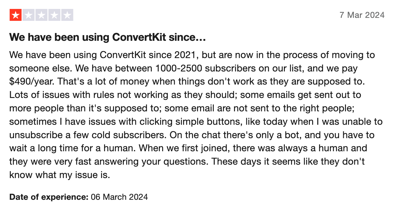 But what are users saying about Kit? Well, Kit has a 3.3 out of 5 star rating on Trustpilot, with 40% of users giving it a 5-start rating and 44% offering up a 1-star rating. The 5-star reviews state that Kit is an intuitive platform, the best out of any other provider, and powers their businesses. However, it is important to note that out of 16 5-star reviews, 10 of these were all published on the same day, raising questions about their authenticity.