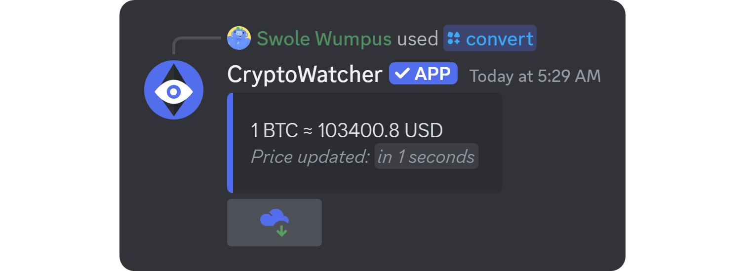 Unlike many other crypto tracker bots on Discord, CryptoWatcher allows you to do more than just create a crypto price channel - you can check transactions, prices, and even convert crypto to fiat and vice versa.