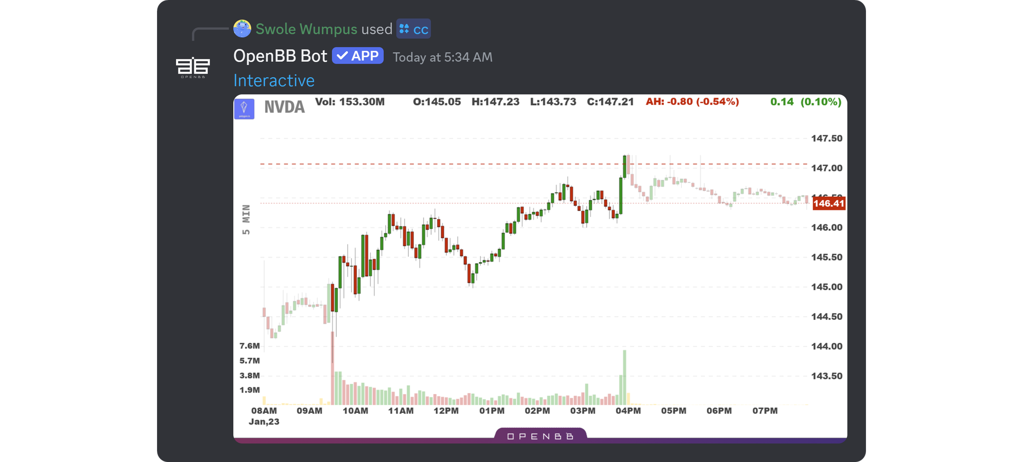 As their name suggests, stock tracker bots allow you to make queries about certain stocks and get a variety of information. OpenBB Bot is one of the most popular stock tracker bots and as of January 2025, it's used in more than 22k servers on Discord.