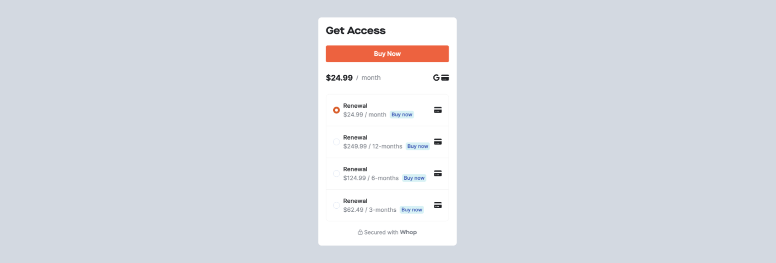 - Offering multiple pricing tiers (monthly, quarterly, yearly) converts more customers and increases revenue per sale.