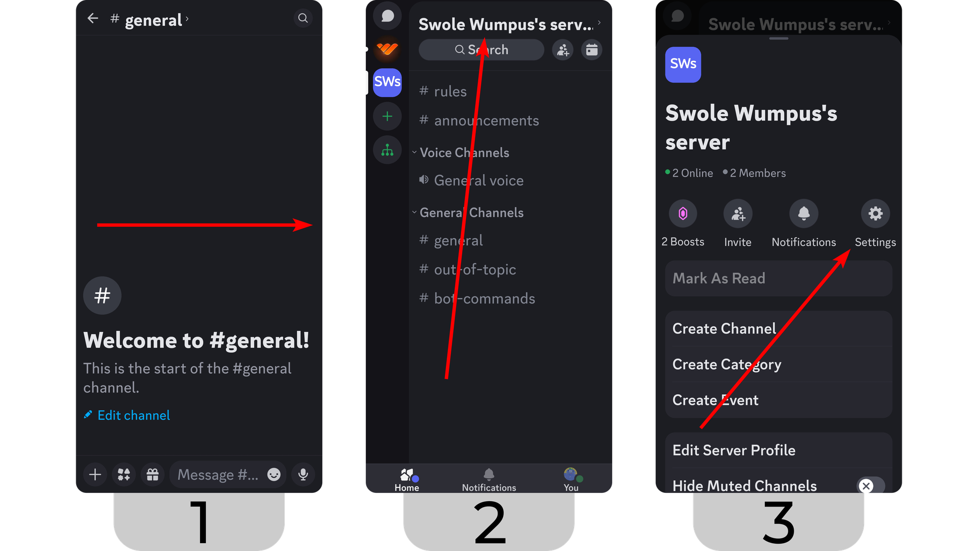 - Swipe right to open up the server and channel list.