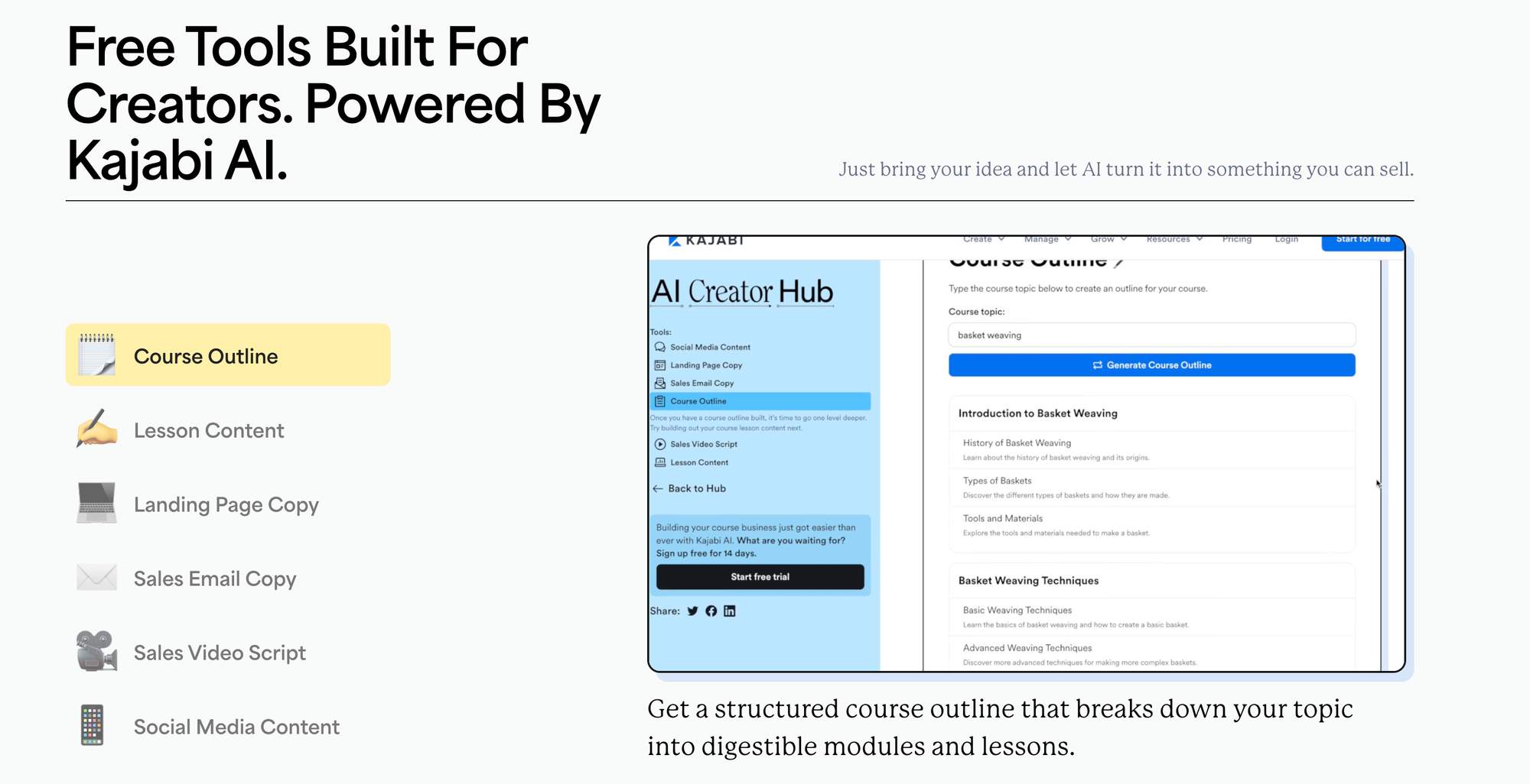 All you need to do with this tool is type in what your course is about and the AI will do the rest!
