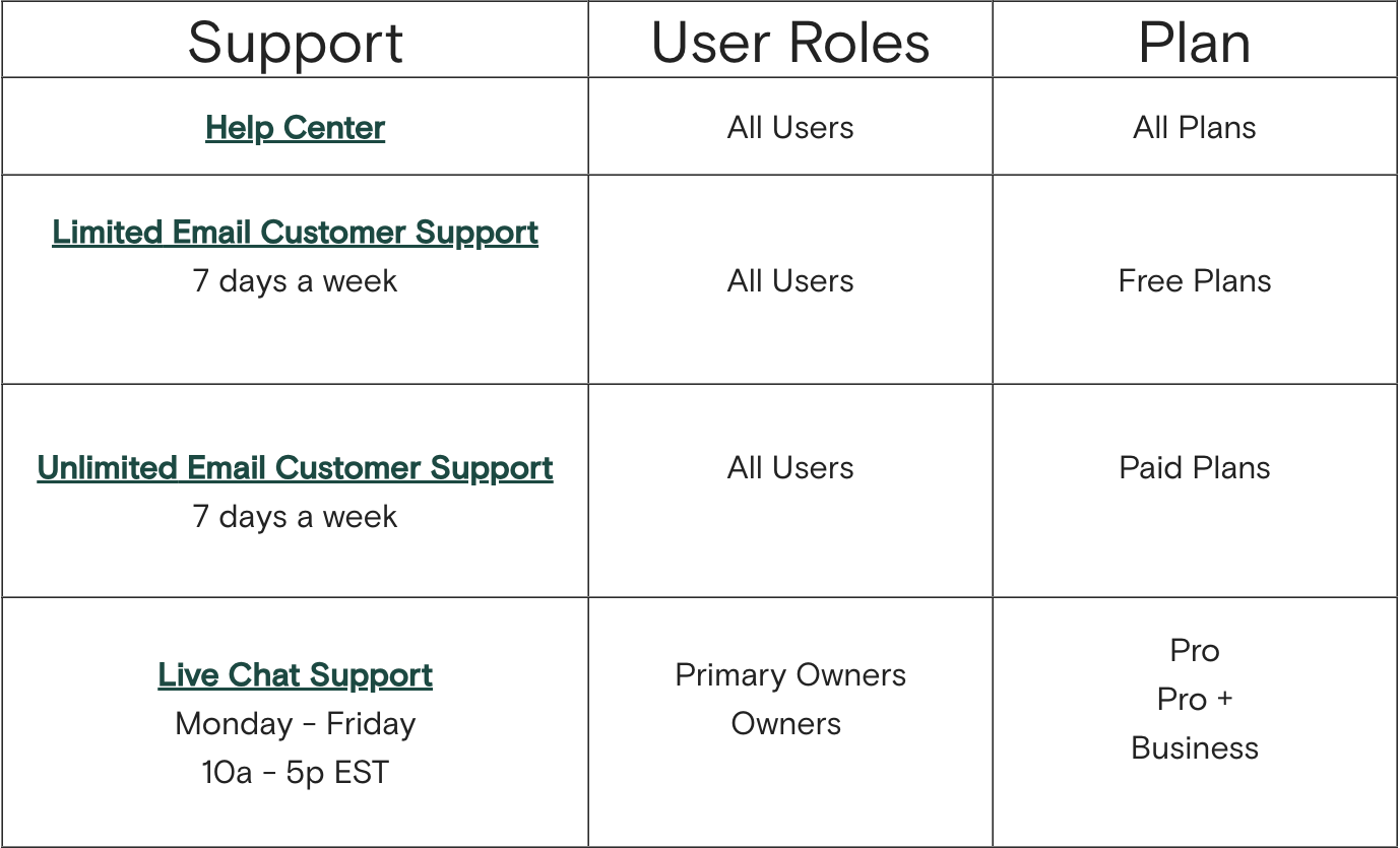 Email and live chat support is available for creators, but live chat is gated behind an expensive membership tier.