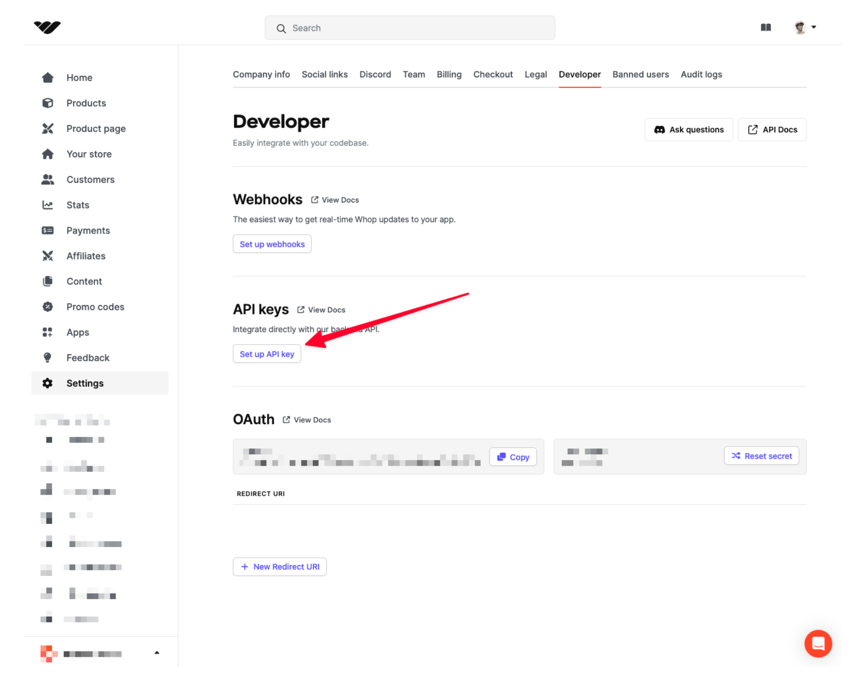 Generating a Whop API key