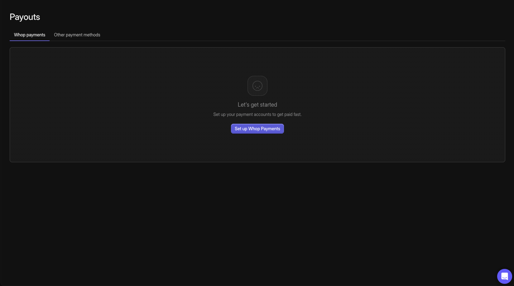 All you'll have to do is navigate to your Payouts tab on your dashboard, and click on "Set up Whop Payments". You'll then need to select the country your bank account is in and verify your account through Stripe. That's it!
