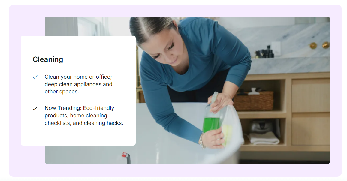 A Tasker being asked to help someone with this in their home might end up creating storage systems for a client, organizing space to be more efficient, or helping them sort out things that aren't needed anymore.