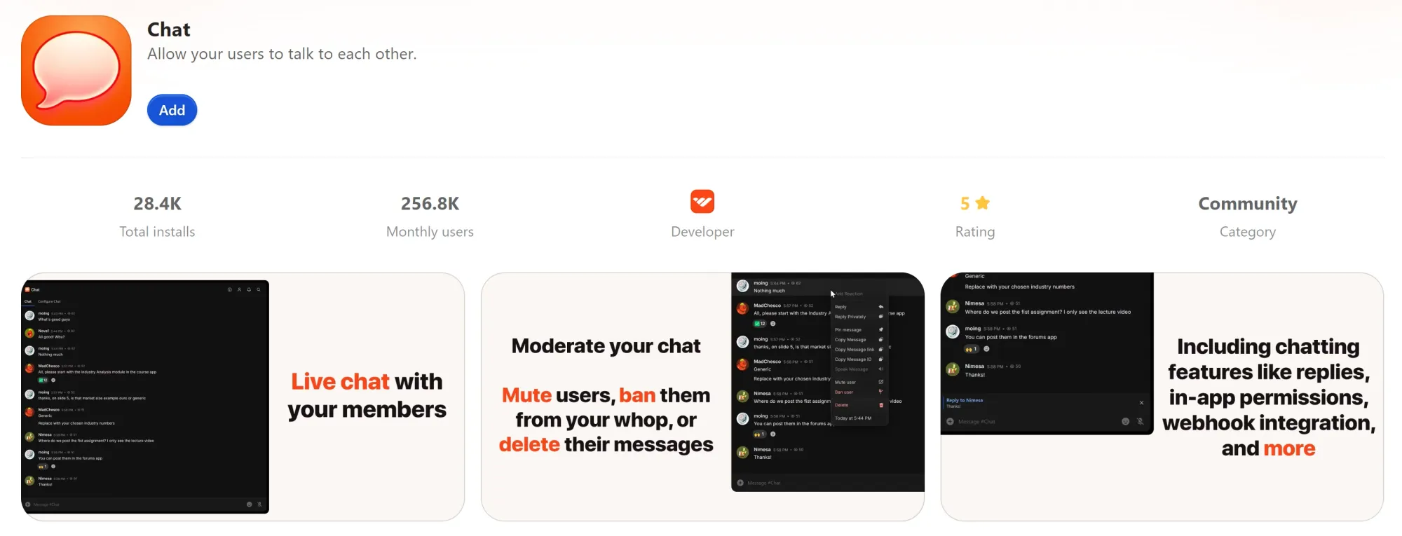 By using whop apps such as ‘Chat’, Discord, or Telegram, you can provide an exclusive live community for your subscribers to take part in.