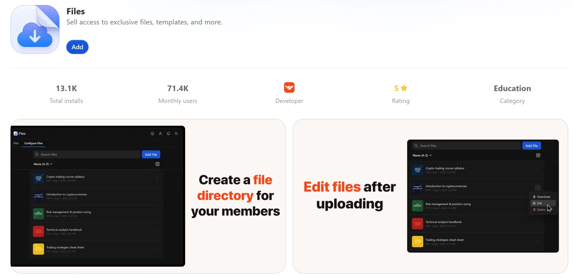 If you’re selling access to files, add the Files app. There’s no limit to how many you can add, so go wild.