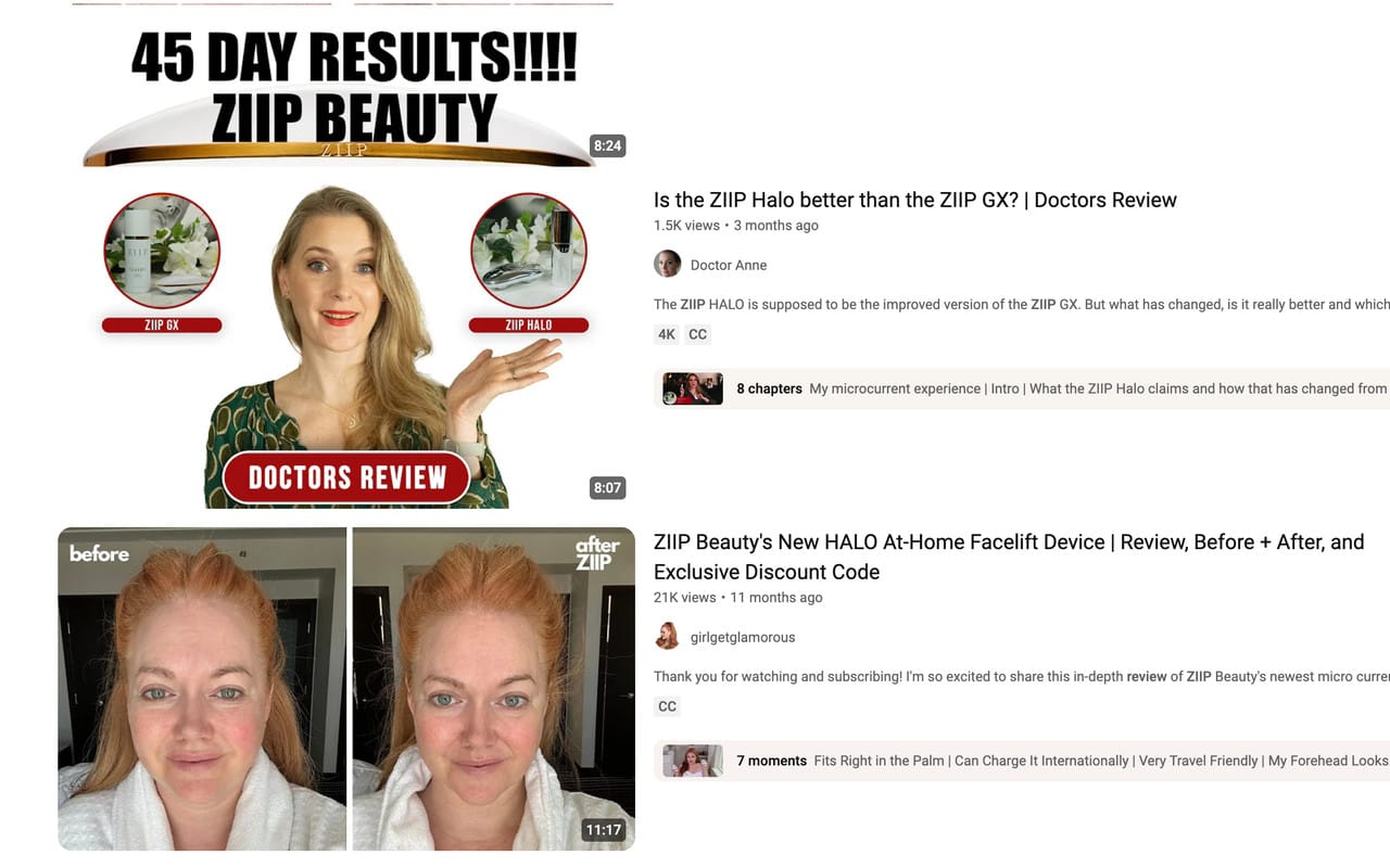 For example, if your YouTube channel is centered around skincare, you can become an affiliate for Ziip and then create a before/after video about it.