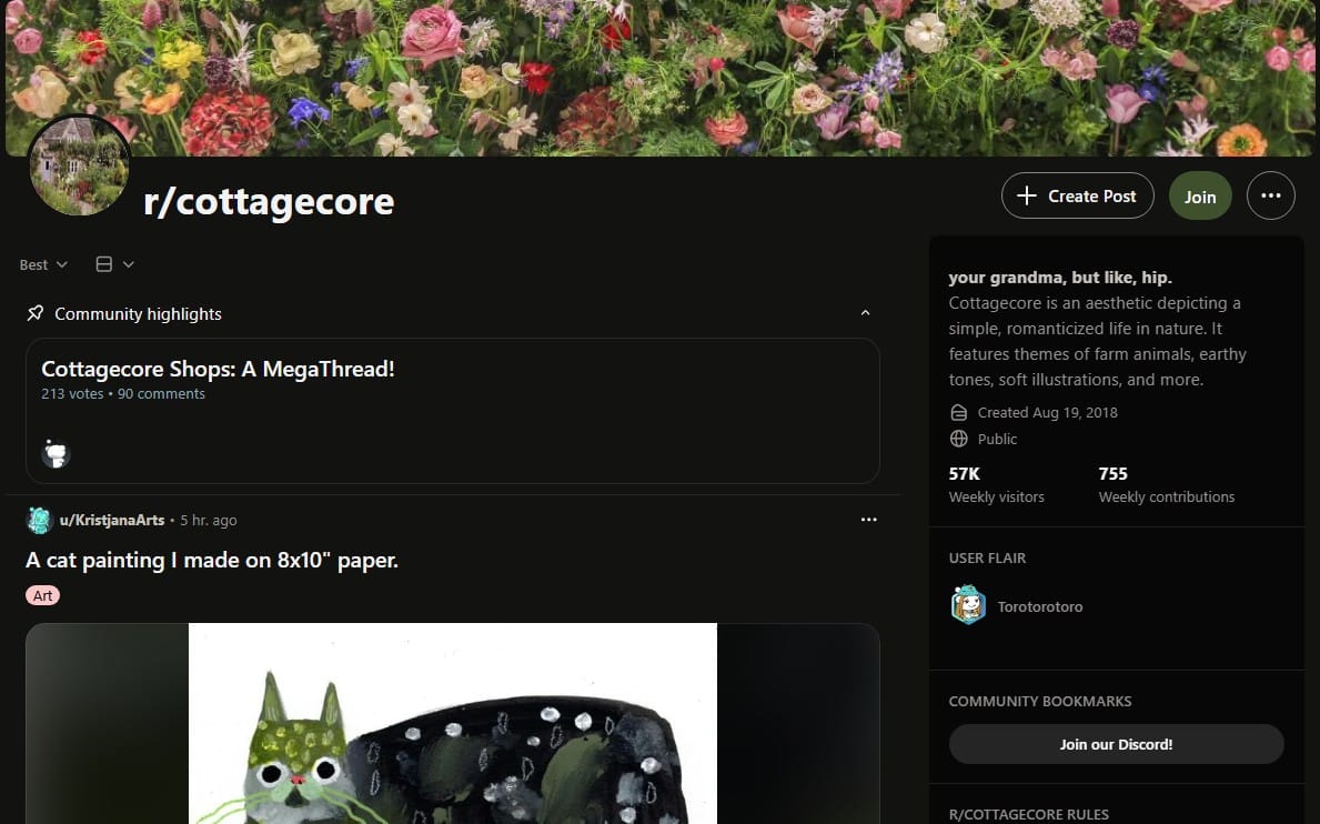 If you're like me, you've seen lots of cottagecore TikToks. Well, there's a subreddit for it, too: r/cottagecore.