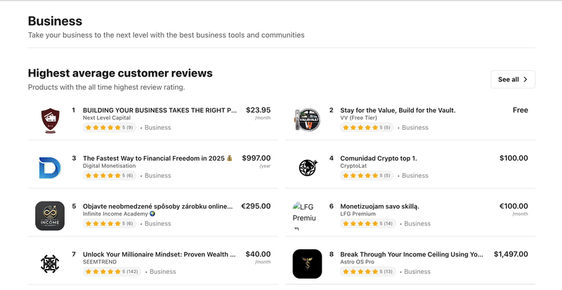 These are just a handful of the online business courses you’ll find on Whop. There are plenty more to explore, and I’ve highlighted a mix of niches and industries to get you started.