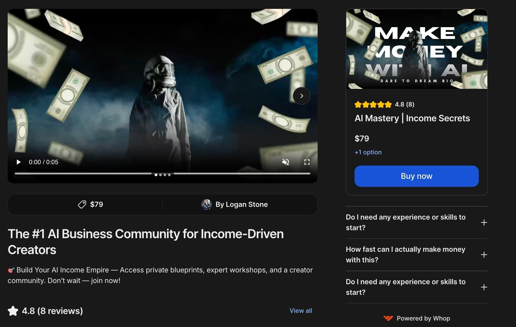 Whop is my go-to, I've investigated a lot of options out there in terms of course hosting and payment processing, but Whop is the leader for me, for sure.