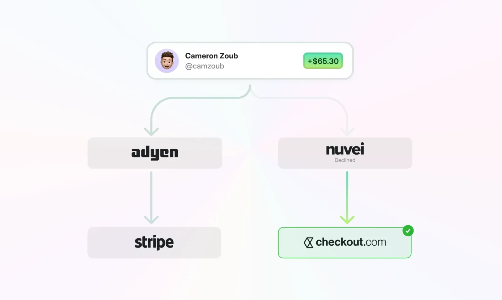 - Payment orchestration that routes transactions to maximise acceptance