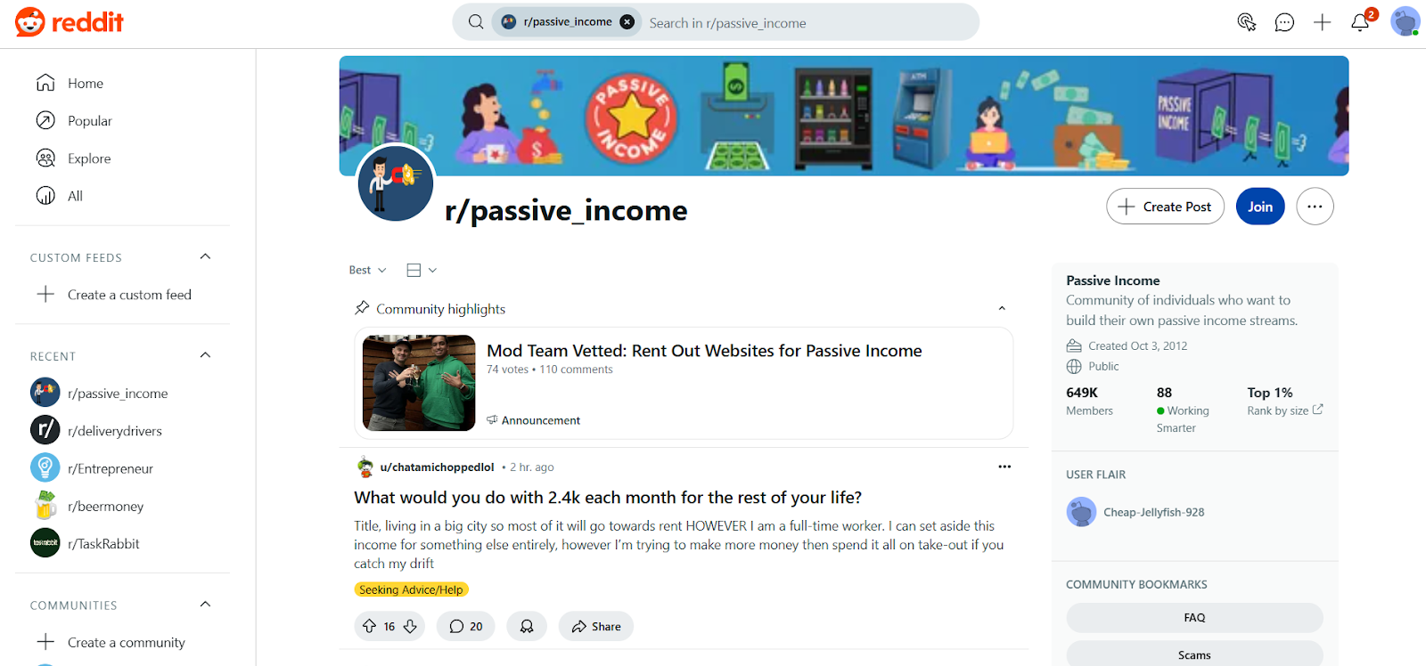Looking for a side hustle that requires minimal activity (or even none at all)? r/passive_income focuses on personal experiences, advice, and resources about these hands-off hustles.