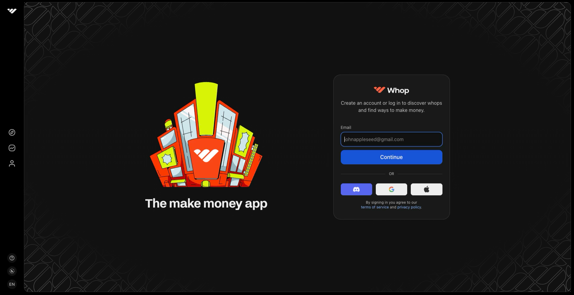 First, get signed up to Whop (if you don't already have an account).