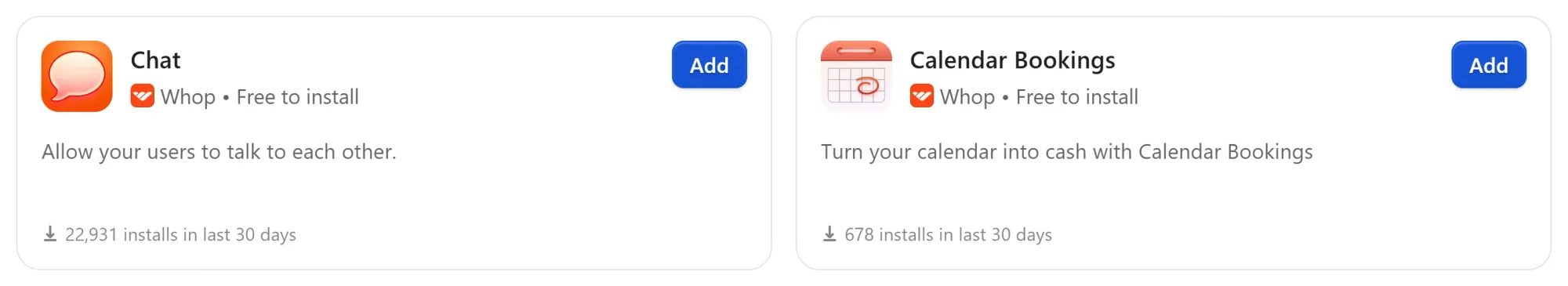 Whop apps are how you customize your offer, from 1:1 calls to calendar bookings, group chats, course modules, and more.