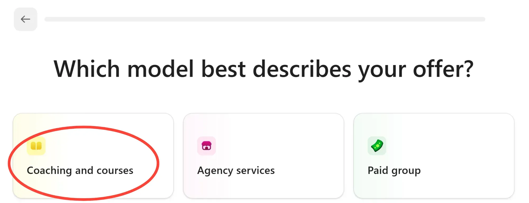 All done? Cool. Let's start setting up your coaching business by first choosing the Coaching and courses option in the first step of the onboarding: