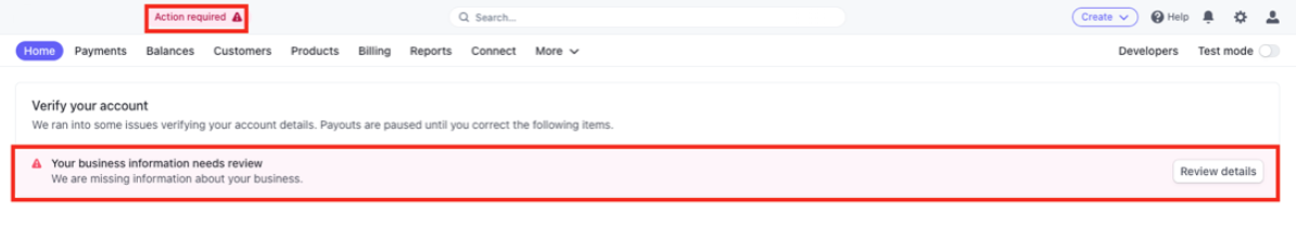 If it’s because of unsupplied documentation, Stripe will simply state ‘Identity documentation required’ under ‘Information needed.’