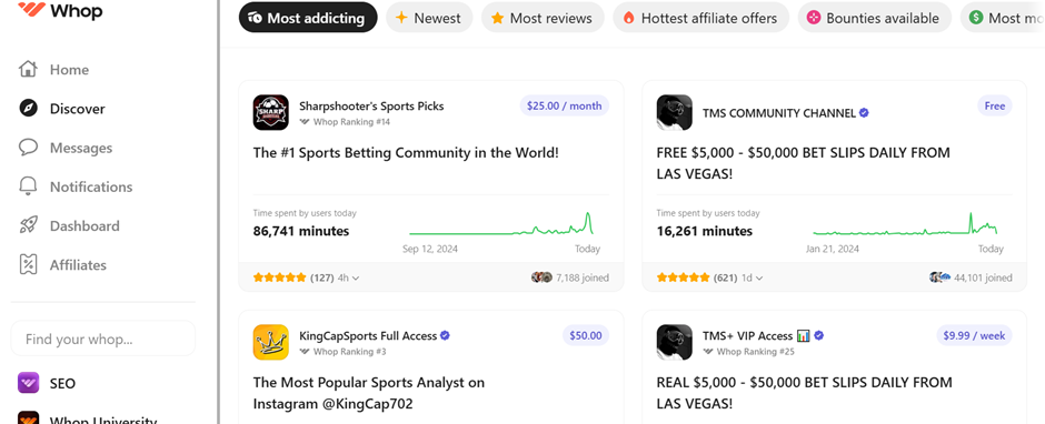 Browse Whop and you’ll find some of the best-known, most profitable, and respected names in sports gambling.