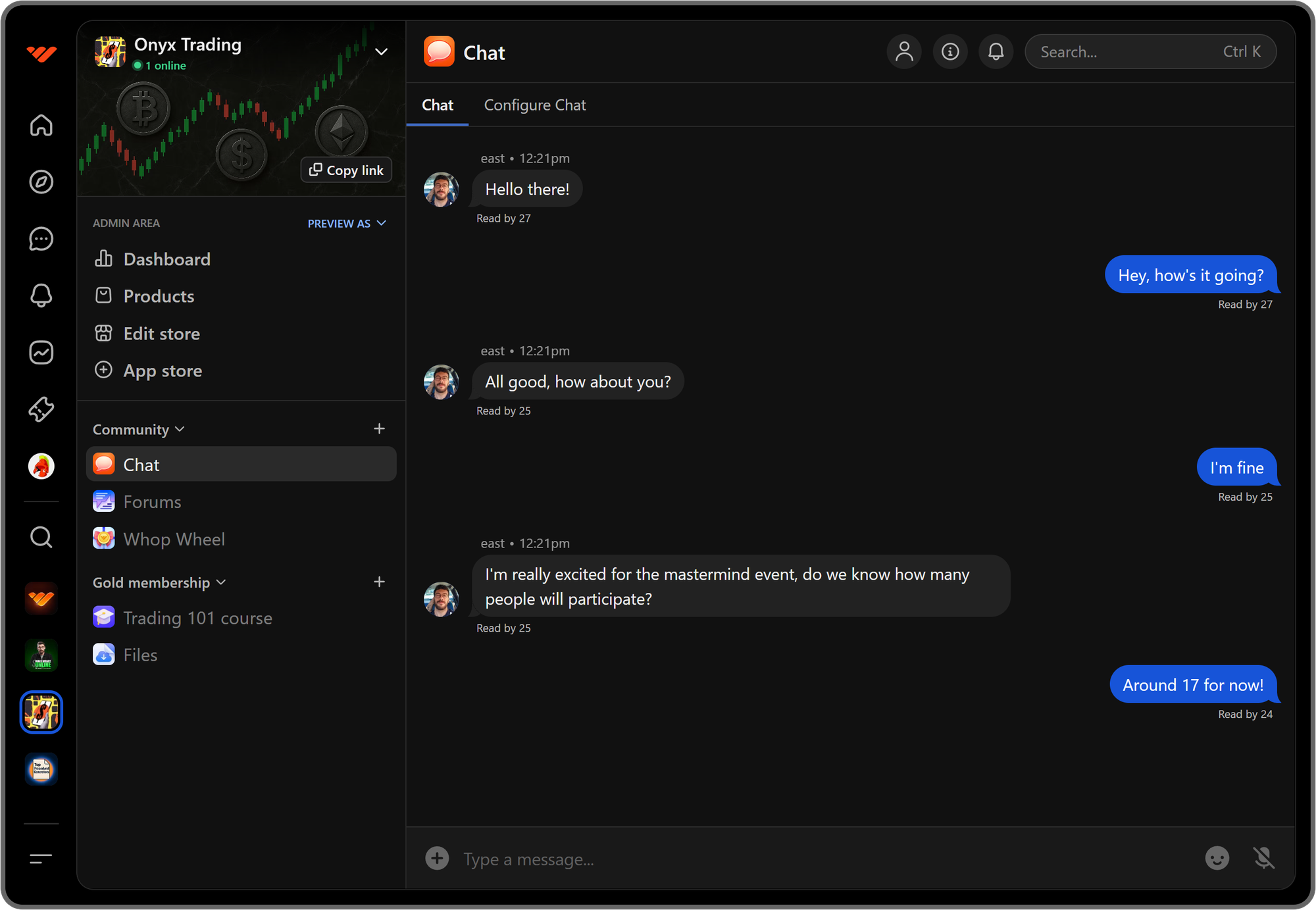 One of the most popular apps you can add to your whop is the Chat app, a live chat room that allows people to communicate with each other.