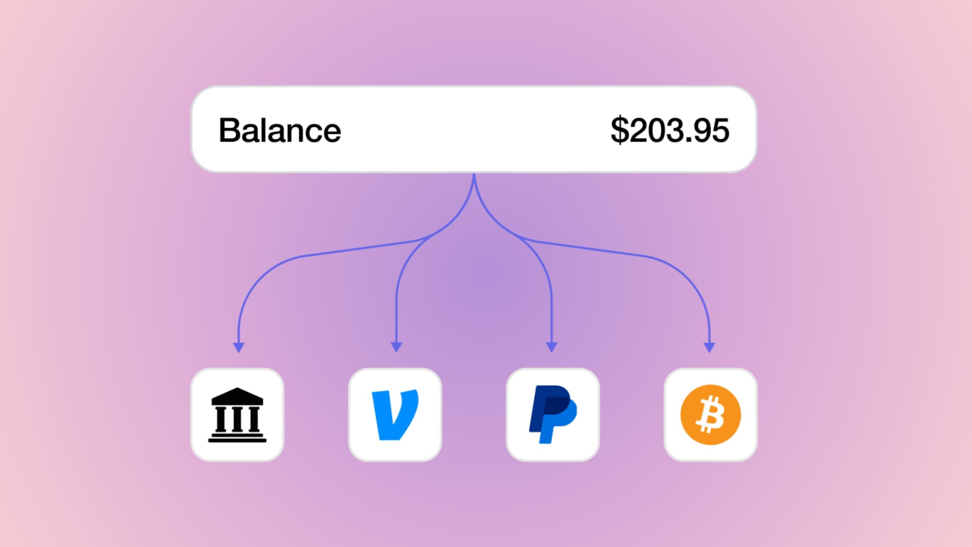 - Payouts are sent to your user’s bank account (or crypto wallet, etc)