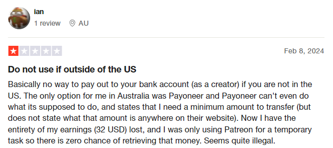 The variety of the complaints in just the most recent reviews suggests that Patreon is plagued by problems in several key areas, from customer service all the way through to payment processing.