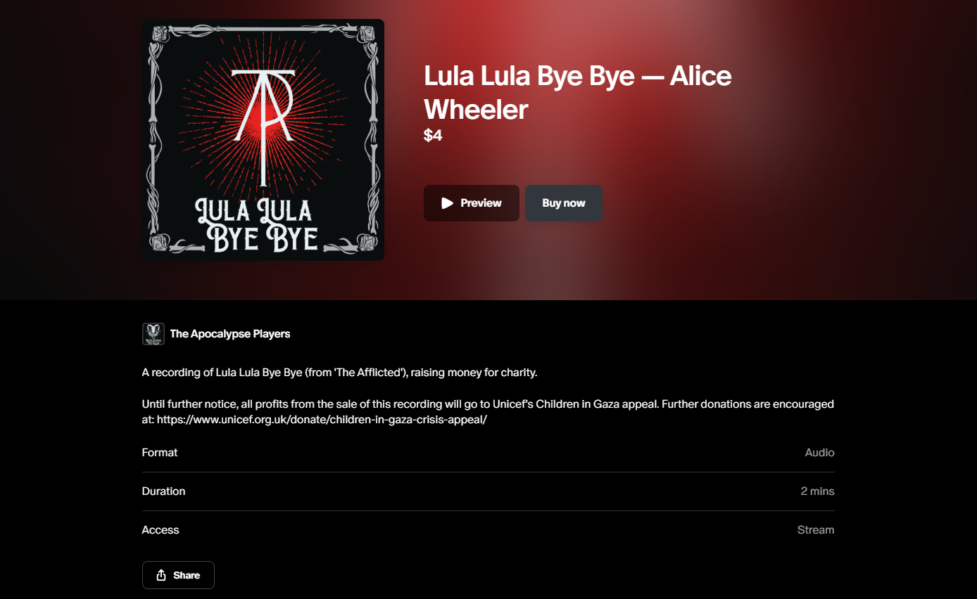 Above is an example of what the Patreon Shop looks like at first glance, and Patreon allows members to buy the file directly using the Buy now button you see in the screenshot. Clicking on the file's image on the left instead sends visitors to the shareable product page, on which they can view more details or preview the file: