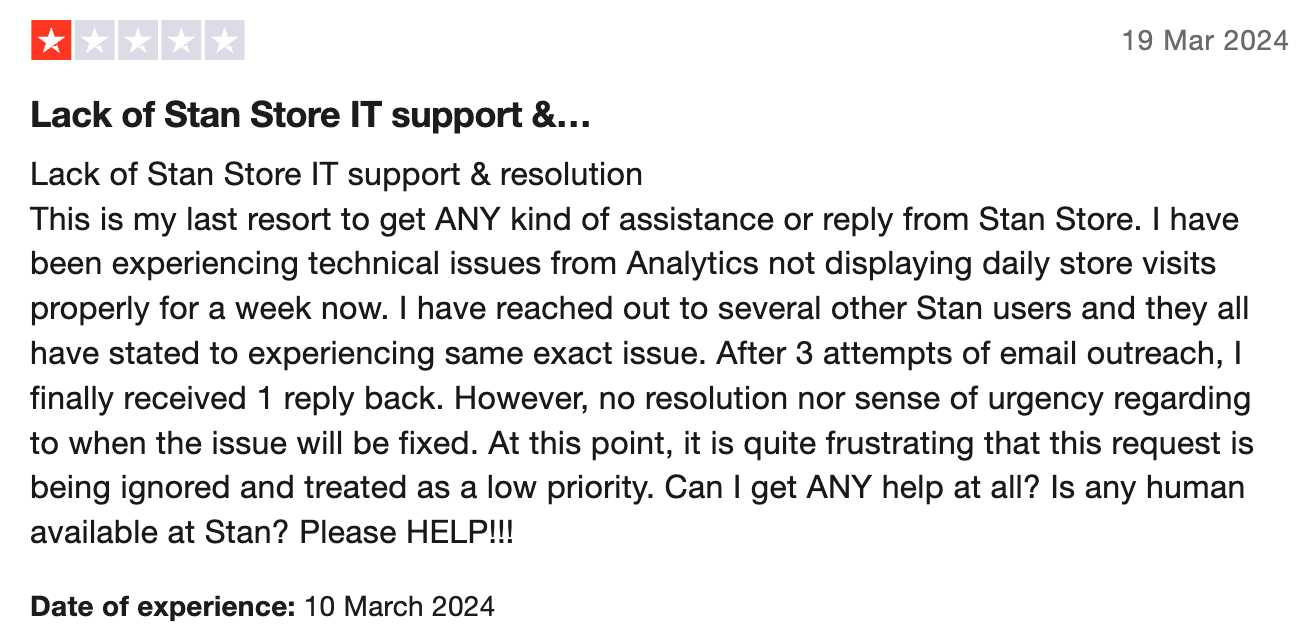 However, overall, reviews for Stan Store are largely positive.