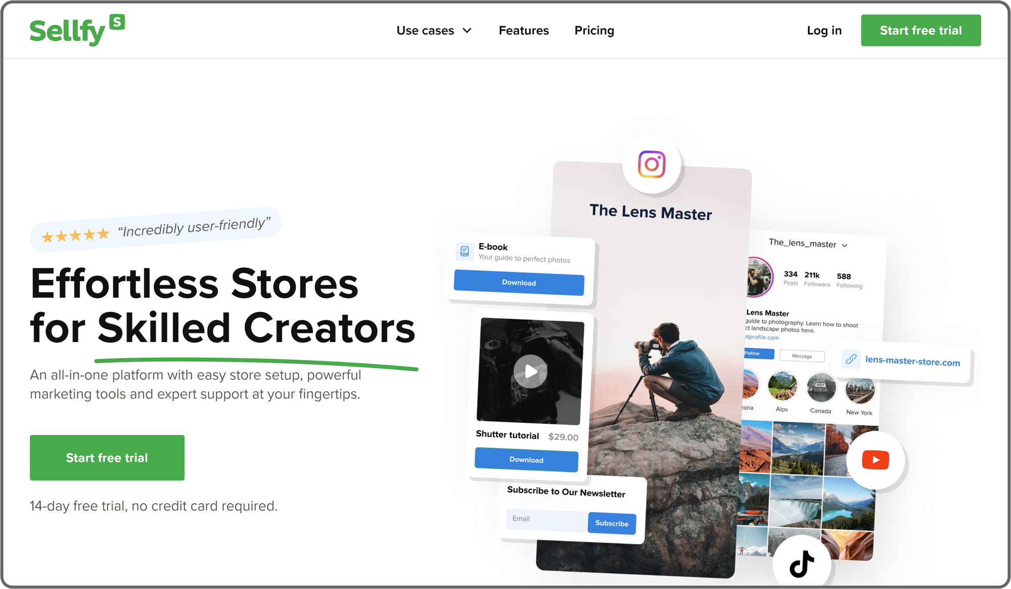 You can sell courses, digital downloads, subscriptions, and services all from a single landing page, which is convenient if you're promoting via socials.