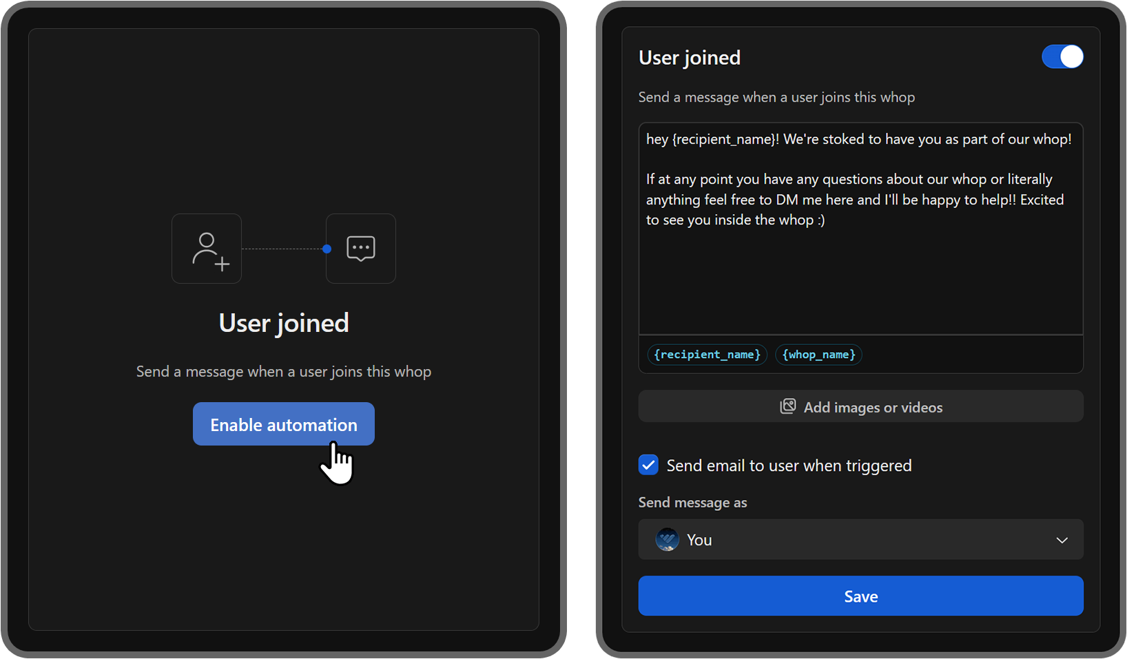 Now, when people join your whop, they’re going to get messages from you automatically.
