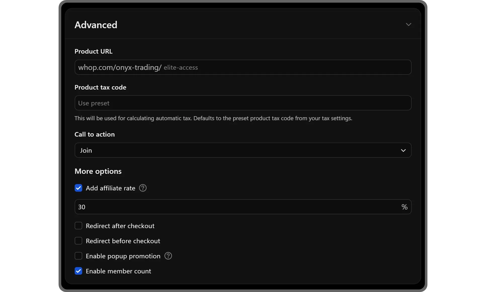- Product URL: Customize your whop's URL