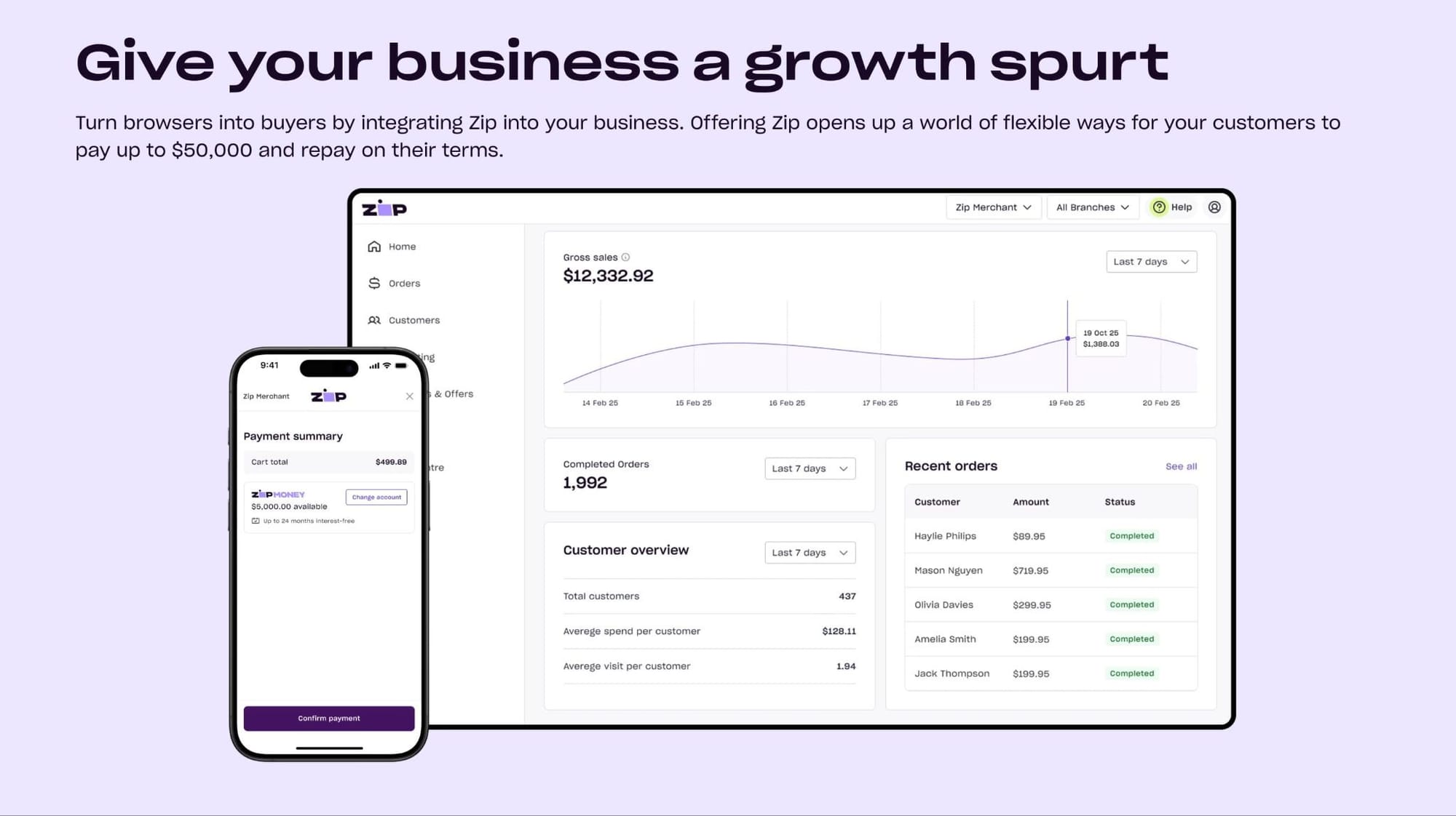 Once Zip confirms their eligibility, the customer completes the purchase and repays the balance over time.