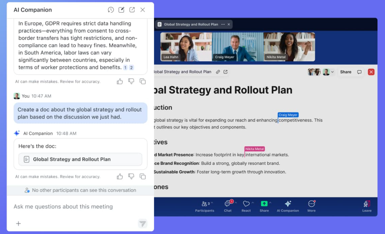 - AI Companion 3.0 summarizes meetings, drafts content, and works across platforms including Google Meet and Microsoft Teams.