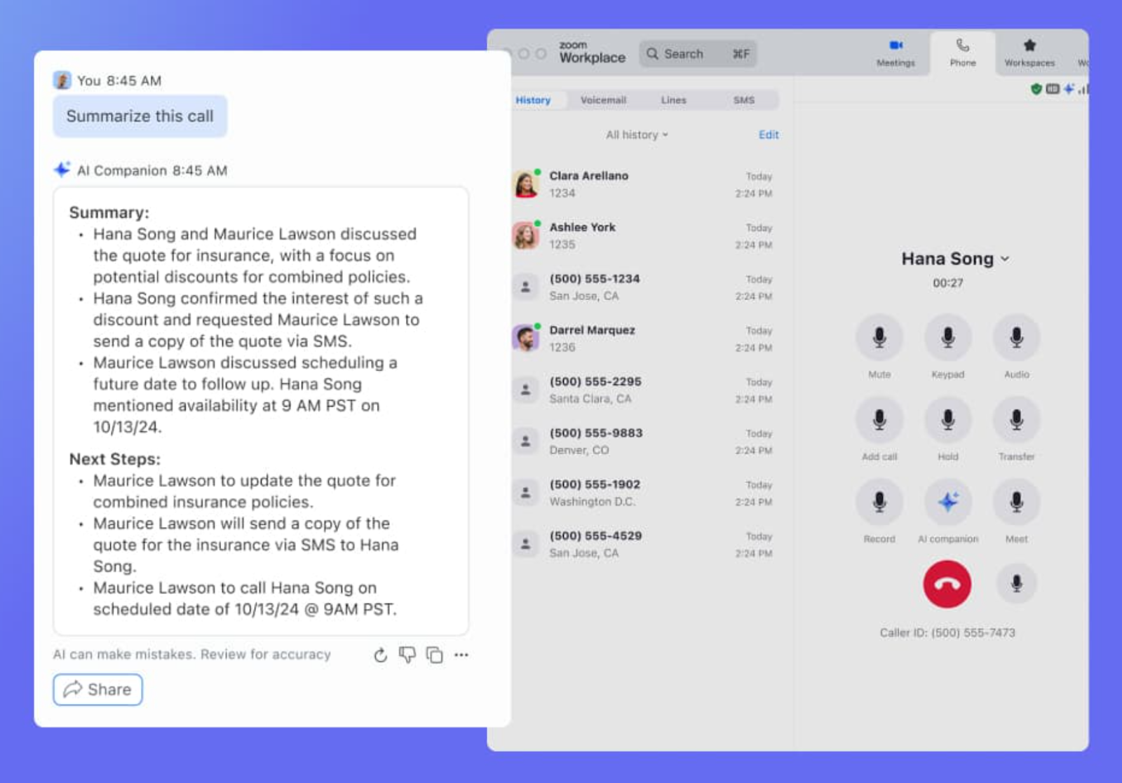 The AI Companion simplifies communications by offering quick, digestible summaries of chat messages, call recordings, emails, or important documents. Instead of scrolling through a long chat thread to catch up or spending time dissecting a dense document, you can get a clear snapshot of key points and action items in seconds.