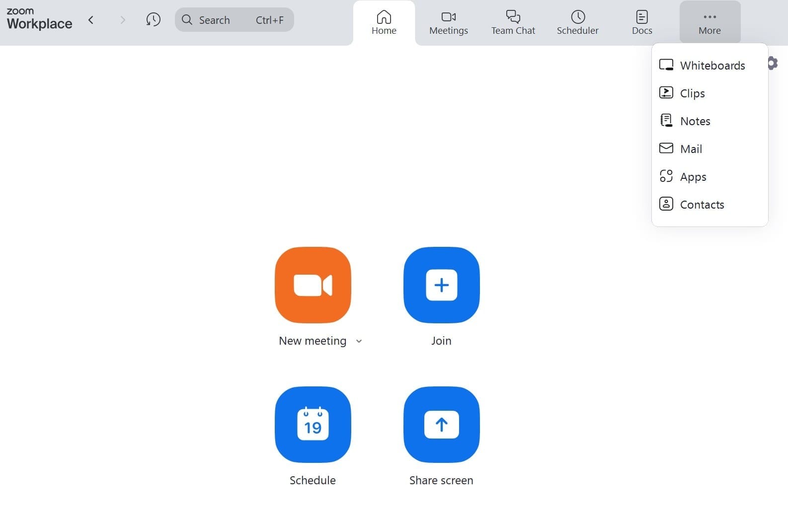 When you first sign in, you’re greeted with a home screen with 4 simple options: New meeting, Join, Schedule, and Share screen.