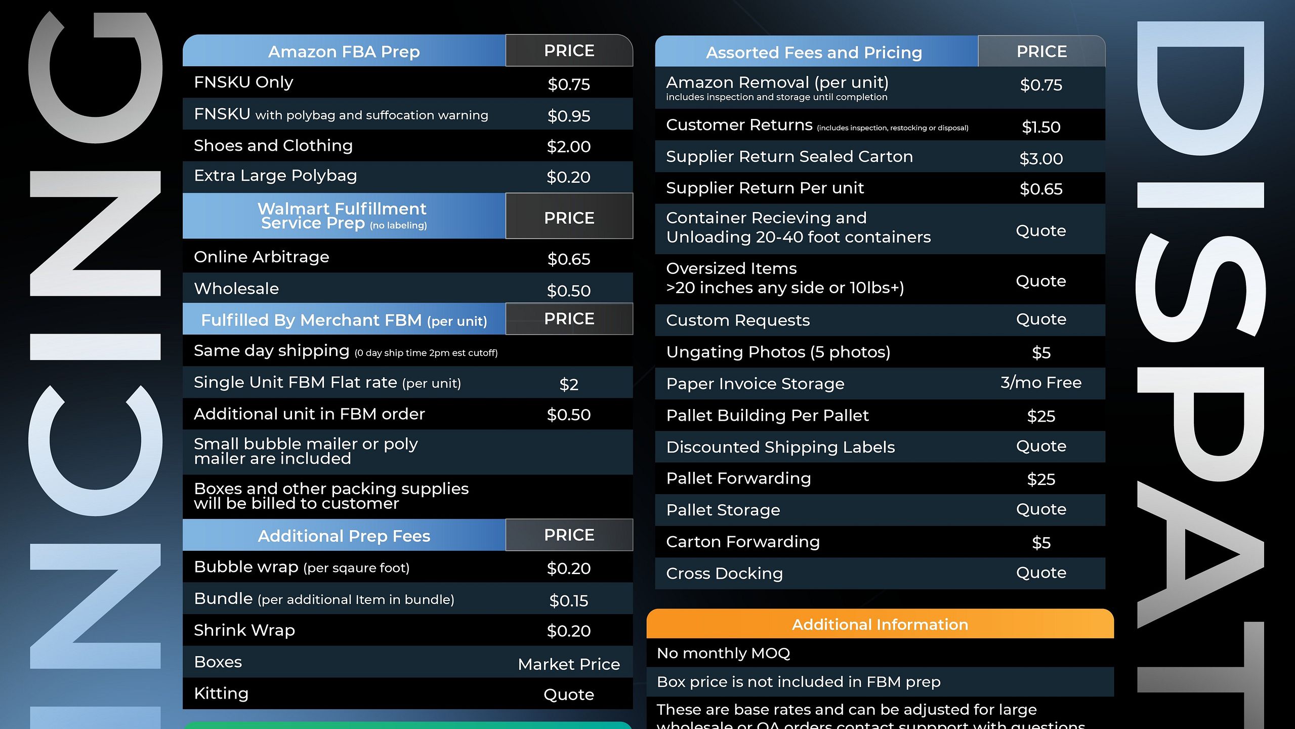 - Order preparation and fulfillment services included.