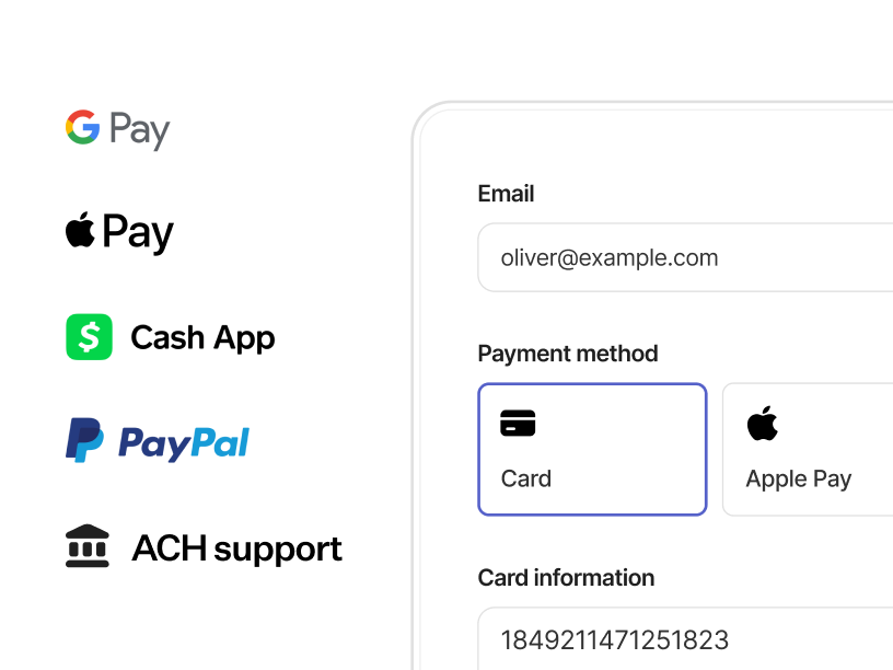 Gain instant access to the world's most popular payment methods. No integrations, no setup.